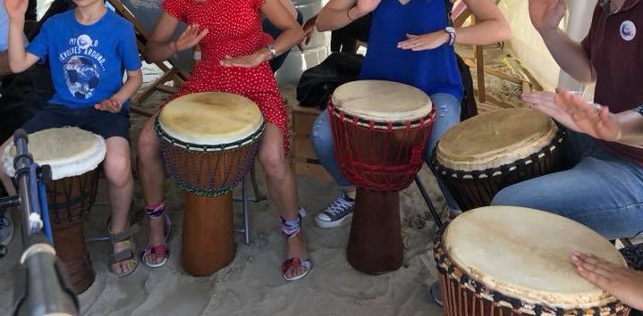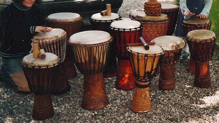 Du lernst afrikanische Rhythmen auf Originaltrommeln.
